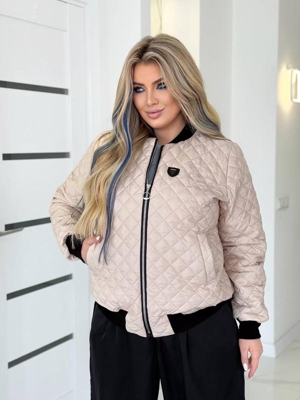 🔥🔥🔥Новинка 🔥🔥🔥 Куртка -Бомбер 0020050 Размер:48-50,52-54,56-58,60-62 Цвет: черный,Бежевый Ткань :Эммы простые с двух сторон на 100 синтипон Цена 1250 грн Очень крутой весенний бомбер этой весны. Выполнено из качественной и мягкой плащевой ткани Эмми, наполнитель синтипон плотностью 100.Бомбер имеет два прорезных кармана.Горловина, манжеты и низ бомбера выполнены из качественной турецкой рибаны. На моделы размер 48-50