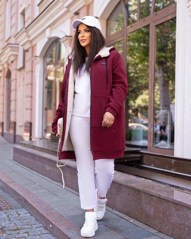 Новина!!! удлиненная куртка с капюшоном на меху овчина: карманы кенгуру Модель: 530 РазмIры : 46-48,50-52,54-56, Тканина: тринитка на флIсi на хутрi овчина: Цвета: хаки,бутылка,фиолетовый,пудра, бордо, молочный: Параметри куртки: 46-48: ог: 122 см, длина 92 см, длина рукава уIд горловины 77 см 50-52; ог:128 см, длина 93 см, длина рукава уIд горловины 78 см 54-56: ог:134 см, длина 94 см, длина рукава уIд горловины 79 см Ткань хорошо тянется! все размеры в имеющихся в наличииостI!
