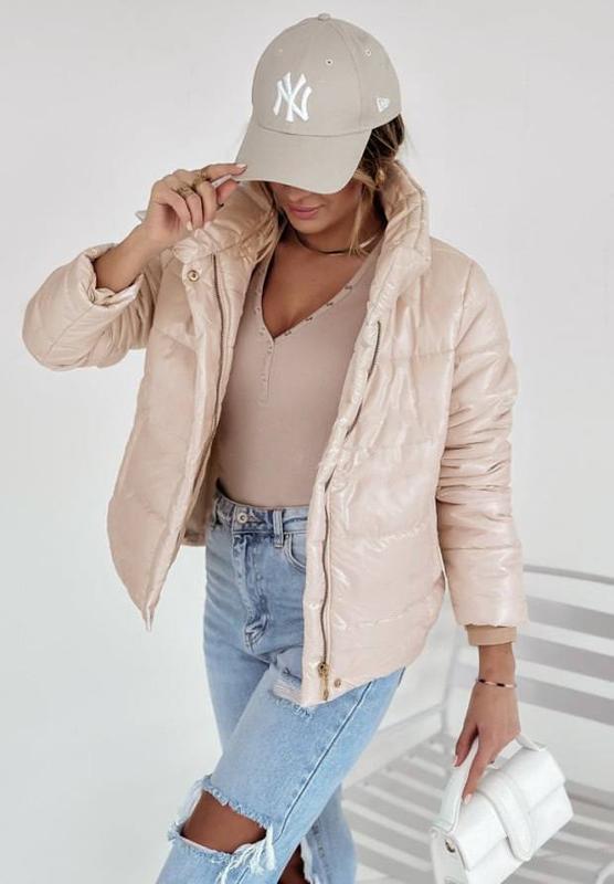 Курточка Мод.1046 Ткань: Плащевка лаке на Силиконе 100 Отличное качество! Размеры: 42-44, 46-48, 50-52 Цвета: Беж, Черный Курточка на замочку+кнопки. Есть карманы