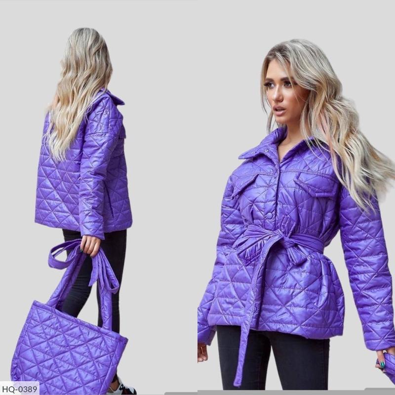 Куртка HQ-0389 мод: 025 Размиры: 42-44, 46-48 Цина разн: 600 грн. Цiна 750 грн. Куртка с сумкой Длина изделия по спинке: 69 см Длина рукава: 77 см Ткань: monkler плащевка Стеганая, синтепон-150 На подкладке, с карманами Под пояс. С сумкой Застежка: кнопки Цвет: Черный, беж, сирень 42-44 размер О / Г-112 см Размер сумки: Ширина - 41 см Высота-31 см 46-48 размер О / Г-120 см