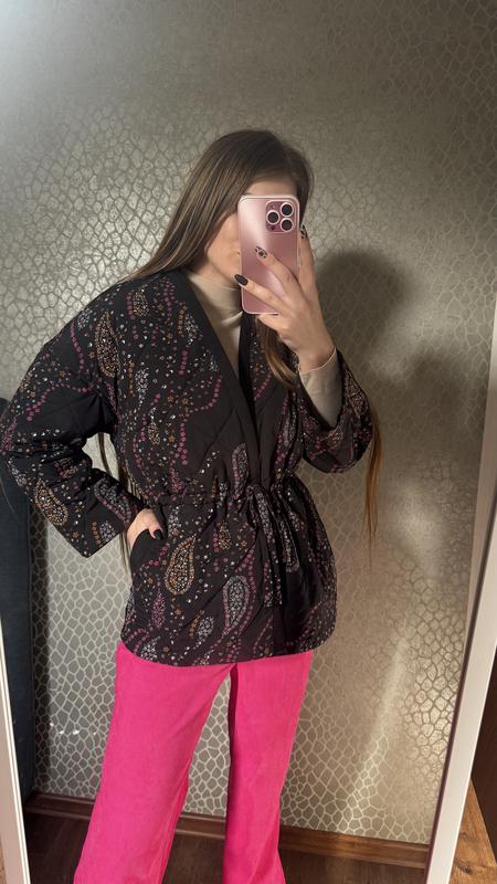 Весняна легка куртка. На поясі затягується шнурікою. Розмір М, підійде і на S