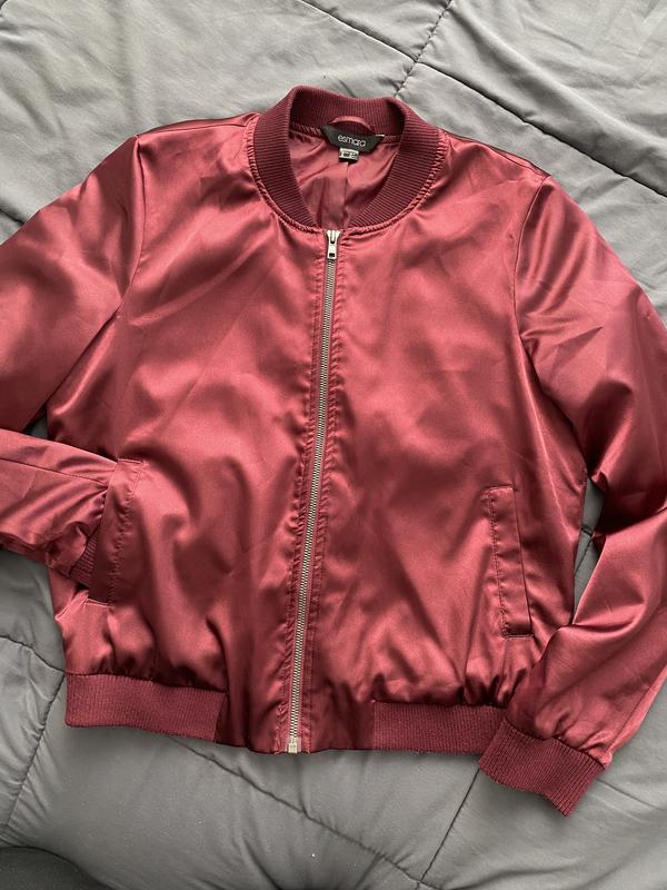 Гарна курточка бомпер, на підкладці,з карманчиками,в темно бордовому кольорі,півобхват грудей51-52,довжина рукава 63-64,з манжетом,довжина 56-67