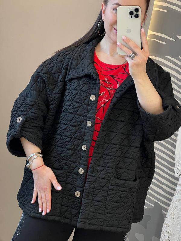 легкая, комфортная и стильная курточка - жакет свободного кроя с небольшим отложным воротником, удобными карманами и рукавами реглан, регулируемыми по длине, отлично сочетается с вещами и аксессуарами разных стилей и цветов, она выполнена из плотного жатого коттона с эластаном, красиво отстроченным, без подкладки, спереди ветровка украшена деревянными пуговицами, курточка отлично подойдет для прогулок в прохладную погоду размеры 52, 54, 56, 58, 60 в зависимости от размера длина 68-72 см, объем груди по изделию от 138 см до 160 см, бедра от 124 см до 150 см, длина рукава от шеи 57-62 см код S 20146 G