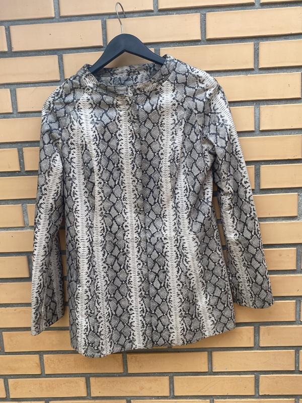 Стильна та практична шкіряна курточка з зміїним принтом.