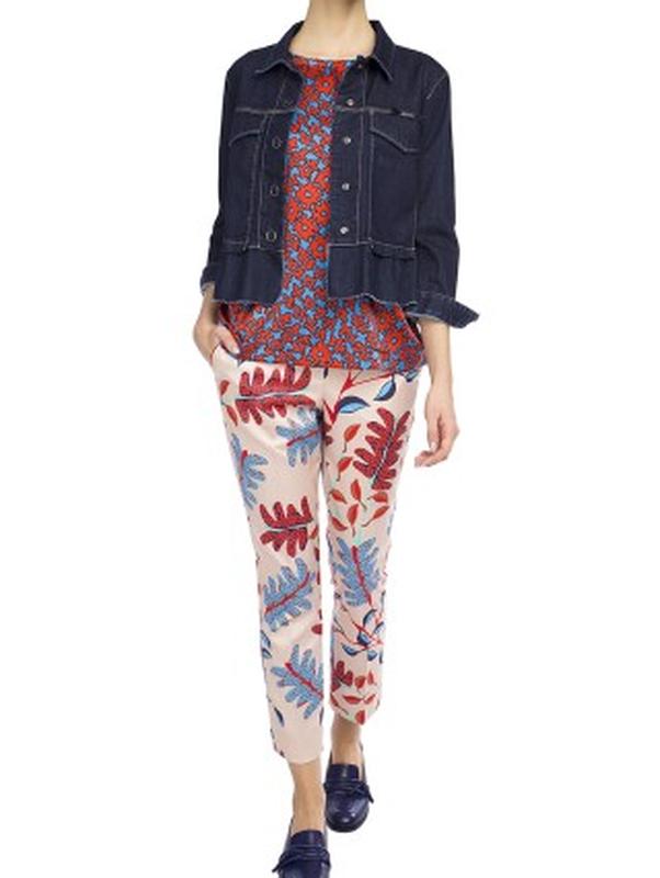 Детали: прямой укороченный крой, отложной воротник, длинный втачной рукав с манжетой на пуговице. Нагрудные карманы с клапаном, рюша от линии талии, планка с рядом кнопок. Цвет: темно-синий деним