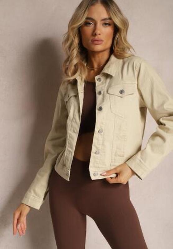Нова котонова вкорочена куртка Базового світлого кольору з необробленими краями, стильна, трохи вкорочена, розмір М, підійде на 42-46