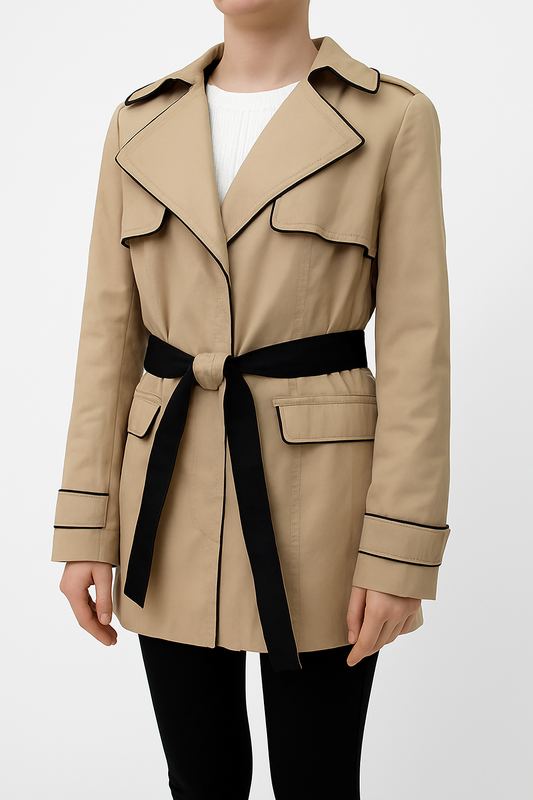 Стильный бежевый тренч с контрастной черной окантовкой и пояском. Классический фасон с широким воротником и клапанами, подходит для весны, лета, осени. Легко комбинируется как с джинсами, так и с офисным стилем. Размер 14 Рекомендую M Длина рукава от плеча 61 см Ширина под руками 52 см Длина тренча 75 см Пояс двухсторонний одна сторона беж, вторая сторона черная Состояние отлично Цена 400 грн🏷 Девочки, чтобы Вы немножко ориентировались на фото девочка-модель в размере XS Рост 158 она на нее заметно большая...