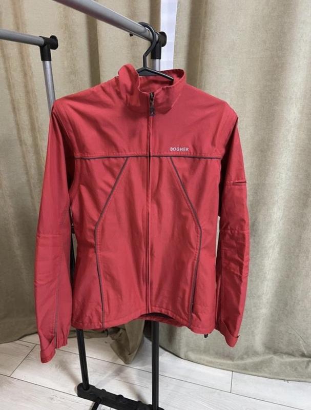 Якісна жіноча куртка вітровка , якої вожна зняти рукава і буде жилетка . Вітровка гарної якості , зручна . На рукаві вказано назву бренду .