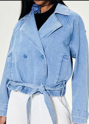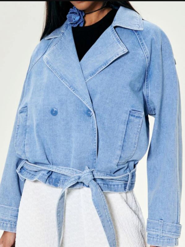 Куртка модна,брендова Длина: regular Декольте: воротник Застежка: пуговицы, двубортные, связывание Рукави: удлиненные, регулируемые Карманы: боковой Материал: бавовна, джинсова тканина Узор: гладкі Крой: oversize состав головной ткани: 100% БАВОВНАЯ В-во Польша.