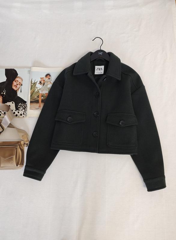 🌿темно зеленая куртка от Zara свободного кроя, ткань пальтовая Размер:XS Замеры: ПОГ 53 см, длина 50 см, рукав от горловины 70 см