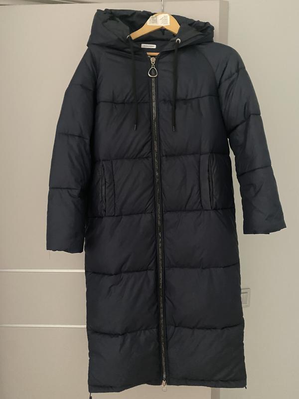 Довга темно-синя зимова куртка з капюшоном. Бренд Katarina Ivanenko, якісна та стильна. Розмір С оверсайз, підійде і на М Довжина 106 см, Пог 55 см, рукав від горловини 72 см