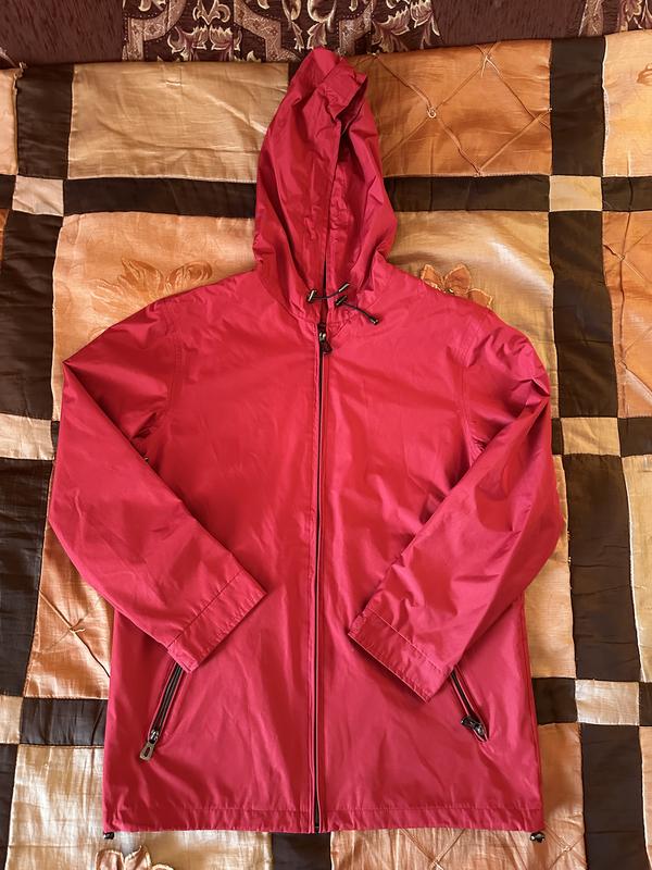 Жіноча бургундська куртка розміром M/L з водовідштовхувальним покриттям. Виготовлена з бавовни. Довжина 71 см Полурбхват 53 см Рукав 50 см Як нова