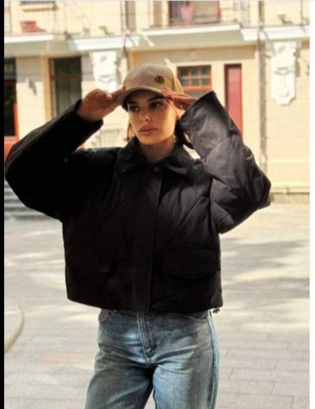Куртка черная, утепленная, оверсайз. Ног - 57см, Др -63см. Длина куртки - 51см