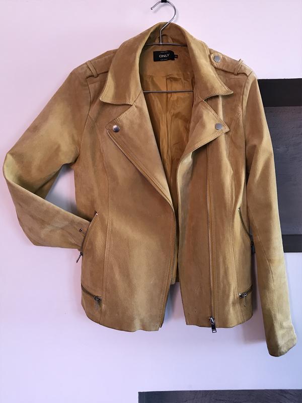 Куртка-косуха замшева only-жіноча,демісезонна,м'яка,світло-золотистого відтінку-м