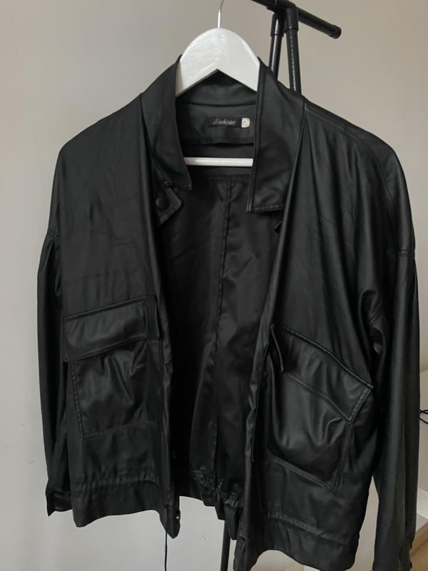 Чорний шкіряний бомбер S–M ✨ На шнурках, можна носити як затягнутим, так і вільним оверсайз.