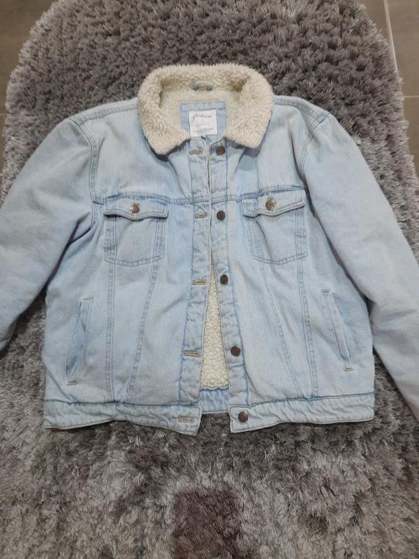Джинсовая утепленная женская куртка на овчине L размера. Купила на этом сайте джинсовку, но нажаль большой. Наделась что будет выглядеть как оверсайз на мою м, но все равно большая. Очень теплая. Ширина под рукавами 58 см, длина изделия 64 см, рукав ниже плеча 65 см.