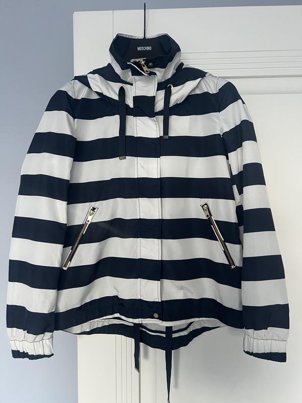 Куртка, вітровка, без підкладки, розмір XS (підходить на S), біла та темно-синя смужка, фурнітура золото, стан - одягнена декілька разів, без нюансів
