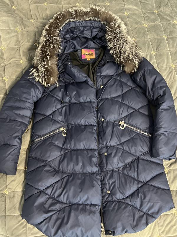 Пуховик зимовий синього кольору з хутряним капюшоном натуральний пісець є карманчики стан ідеальний розмір М йде оверсайс є манжети на рукавчиках