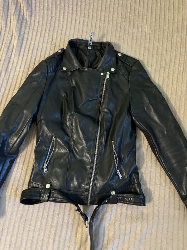 Приталена шкіряна куртка Вдягала пару разів Вся фурнітура в ідеальному стані Розмір по бірці Л, по факту с-м