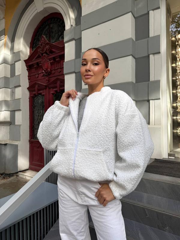 Фото,видео реал🌹 Куртка-бомбер, без подкладки Тканина букле Модель - 096 ▫️Размеры - 42-46 onesize ▫️Цвета - черный,молоко,графит,шоколад Все цвета в наличии ▫️Изменение цены-899 грн Отличное качество и пошив