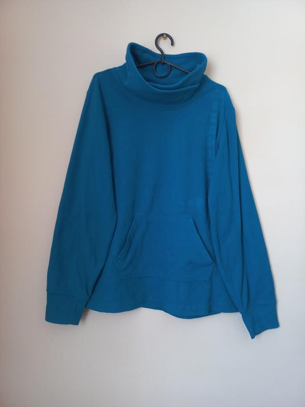 Теплая нежная флиска с карманом и вырезами на пальчик на рукавах. Цвет морской волны, на фото не совсем передается. Указан размер 52/54, и более ориентируйтесь на замеры. Замеры: Рукав от плеча - 67 см Ширина под руками - 65 см Плечи - 48 см Длина от плеча - 67 см Бренд - KangaRoos