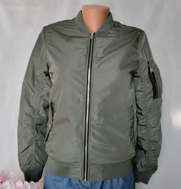 Класна курточка бомбер демі. Унисекс. Молния застегивается на мужскую сторону. Размер указан 11-12 лет, но будет на С, смотрите по замерам. Замеры: плечи 39 длина 57 длина рукава 59 пог 47.