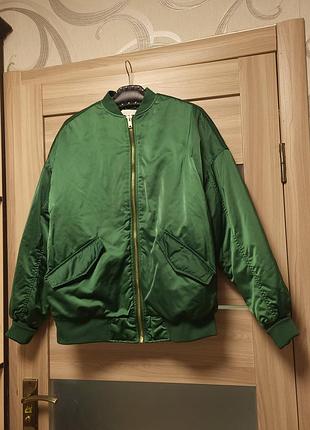 Бомбер от h&m. Утеплений Подходит даже на мороз. Свободного кроя, объемный. Размер пишет 32 (xs), но я одевала и на М. То тоже объемно. Длина 68, грудь 60 Рукав от горловины с развернутым манжетом 86