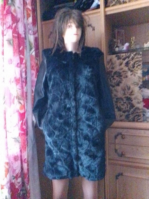 Стильная шубка с кожаными рукавами.Выглядывает как жилет с рукавами. По меху-стан нового; рукава -е потертости на коже(не существенно-можно подкрасить) Поэтому такая цена.