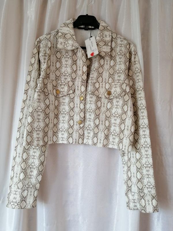 Летняя джинсовая куртка с необработанным низом принт python змея чешуя питон размер подойд...