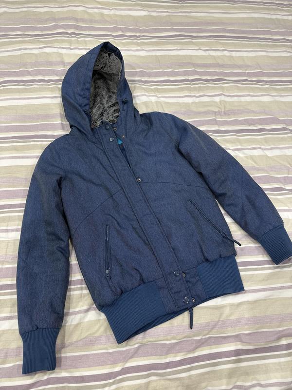 Осіння куртка розмір M, колір синій. Не поодувається,рукава та низ на резинках,капюшон регулюється.Фурнітура вся працююча,без нюансів.100% поліестер,утеплена. Заміри: від плеча до плеча-42 Загальна довжина сзаду від капюшона-65 Рукав від плеча-65 Ширина від пахви до пахви- Ціна одразу з урахуванням комісії.