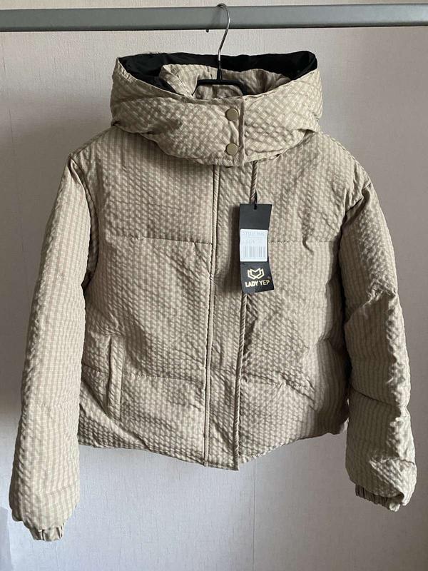 Ця коротка жіноча куртка-пуфер від Lady Yep — ідеальне поєднання комфорту, тепла та сучасного стилю. * Дизайн: Укорочений крій, що відповідає останнім модним тенденціям, створює стильний силует. Особлива текстурована тканина у світло-бежевому або пісочному відтінку з графічним малюнком (схожим на "ялинку" або дрібну клітинку) надає виробу оригінальності та вишуканості. * Деталі: Високий комір та об'ємний капюшон надійно захищають від вітру та холоду. Куртка має контрастну чорну підкладку, яка додає практичності та естетичної привабливості при розстібанні. * Практичність: Застібка на блискавку та додаткові кнопки забезпечують надійне утеплення. Це легка та об'ємна модель, яка стане вашим улюбленим вибором на демісезон або єврозиму. Створіть модний та затишний образ з цією універсальною курткою!