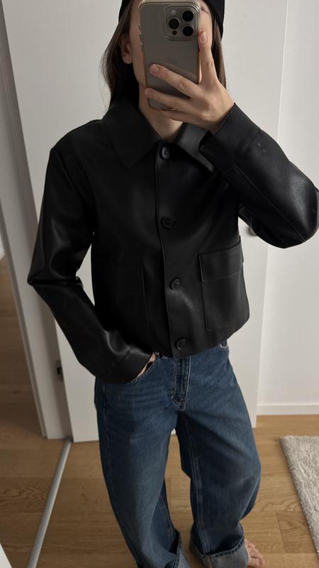 Новая черная куртка из искусственной кожи Mango размер S. Застегивается на пуговицы. Карманы скрытого пошива. Подойдет на девушек с размером ХС. Параметры девушки на фото: рост 163, грудь 84 см, талия 63 см, бедра 94 см.