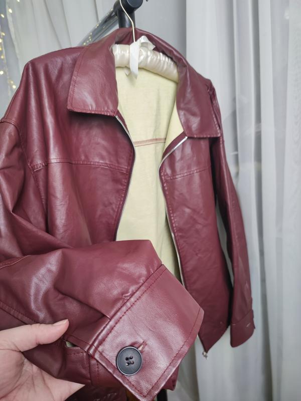 бомбер из искусственной кожи на молнии цвет глухой винный, марсала без утепления по наборке Л, подойдет на л хл 2, 3 хл