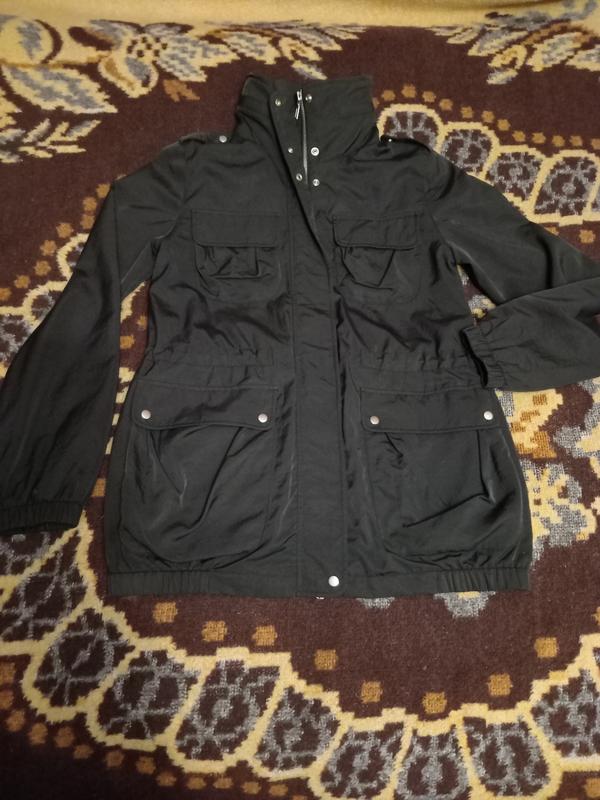 Женская куртка - ветровка, известного бренда, с подкладкой. Ткань (64 % нейлон 36% полиэстр) мягкая, легкая на вес. Подкладка из сетчатой ткани. По линии талии стягиваются шнурком, по низу на резинке. Капюшон прячется в воротник-стойка. Застежка молния разъемная. Размер 46-48. Замеры :Пог 48см, Пот 50см, Поб 56см, плечи 39см, длина рукава от плеча 61см, длина по спине 70см.Б/у в идеальном состоянии без дефектов