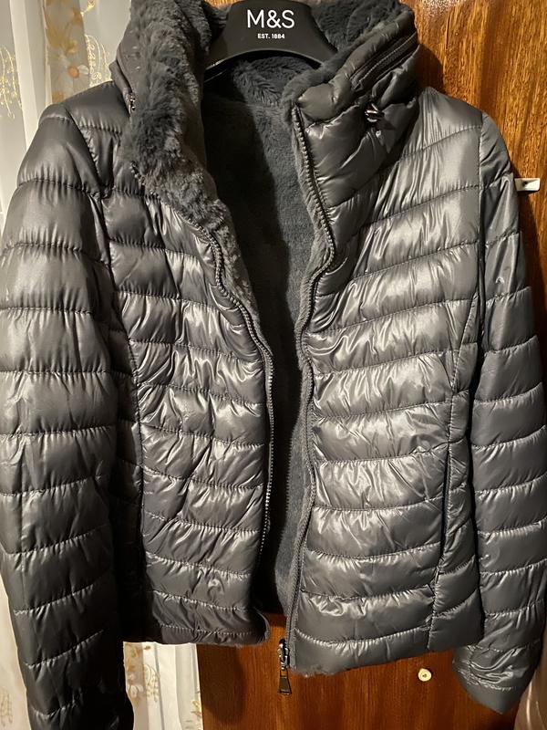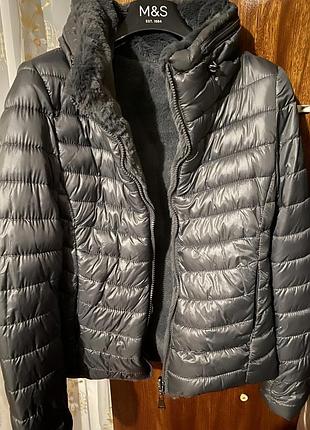 Розмір XS (на мініатюрну дівчинку) Виявилась за мала. Носилась пару разів. Бірок немає, але виробник Європа можливо Туреччина. Графітовий колір. В середині як щільний фліс, хутро (не знімається). На прохолодну весну/осінь