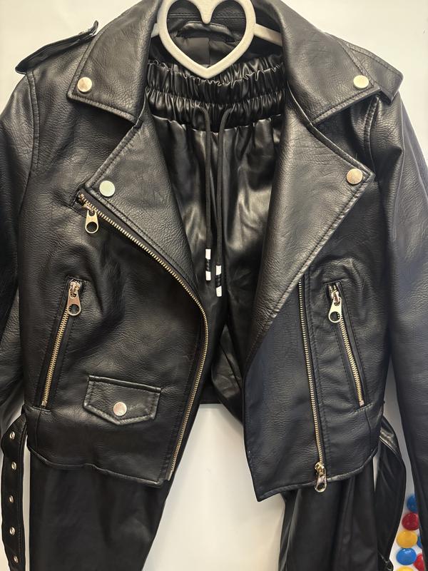 Стильна куртка в новому стані.Штанці - в подарунок. Заміри: ПГ-38, рукав від плеча-57, довжина -44. Штанці: довжина -98, кроковий-71, ПС -46