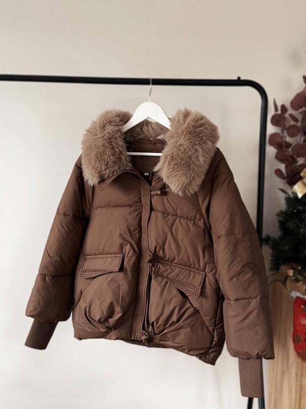 Тепла куртка з хутряним коміром 🤍