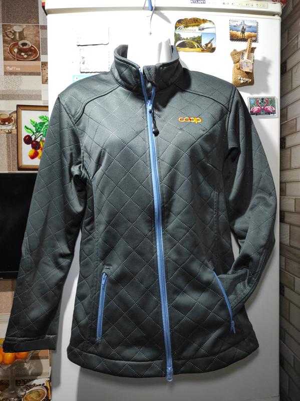Фирменная,женская,термо куртка,софтшелл на флисе (S)-44 р-Coop в новом состоянии, подкладка-флис, идет удлиненная по спинке, по низу есть утяжка. Длина-67-73 см,ПОГ-49 см,ПОТ-45 см, по низу-48 см, по плечам-43 см,рукав от плеча-58 см