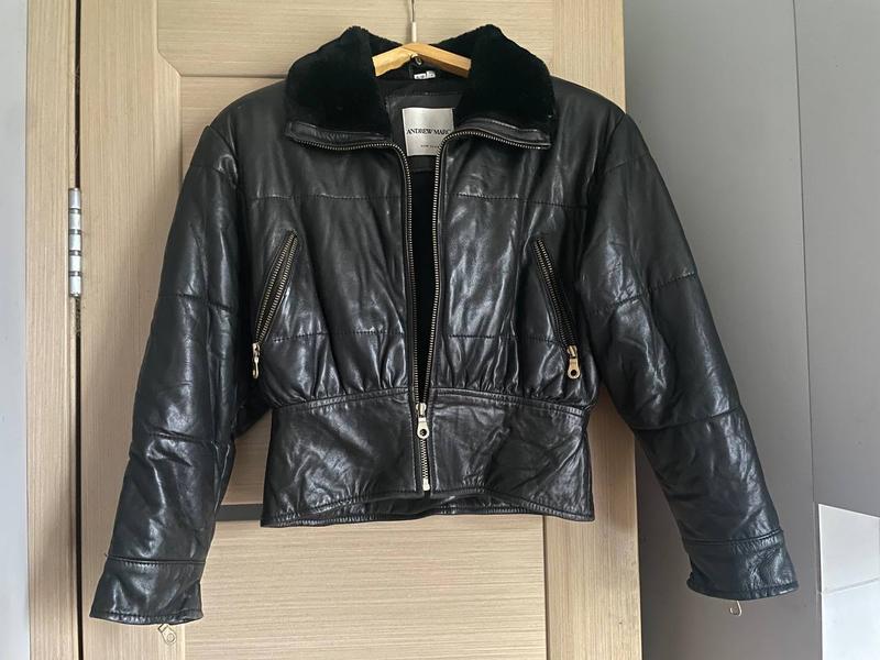 Стильна дизайнерська утеплена куртка з натуральної м’якої шкіри