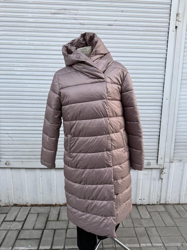 Зимова курточка довга розмір приблизно 44 бежевого кольору
