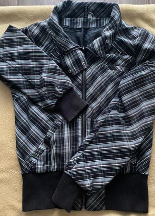 Куртка - бомпер H&M Divided У чорну та синю клітинку ( з поліестеру та бавовни) Плечі- 40 Довжина виробу 62 Довжина рукава 65 ПОГ 47 М Розмір 40 Бокові кишені на заклепках Рукави і низ куртки еластичні манжети Комір на заклепку Нагрудна невелика кишенька На рукаві кишенька на блискавку Манжет знизу куртки 38 65 % поліестер 35% коттон