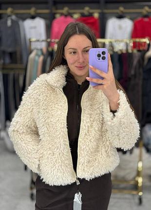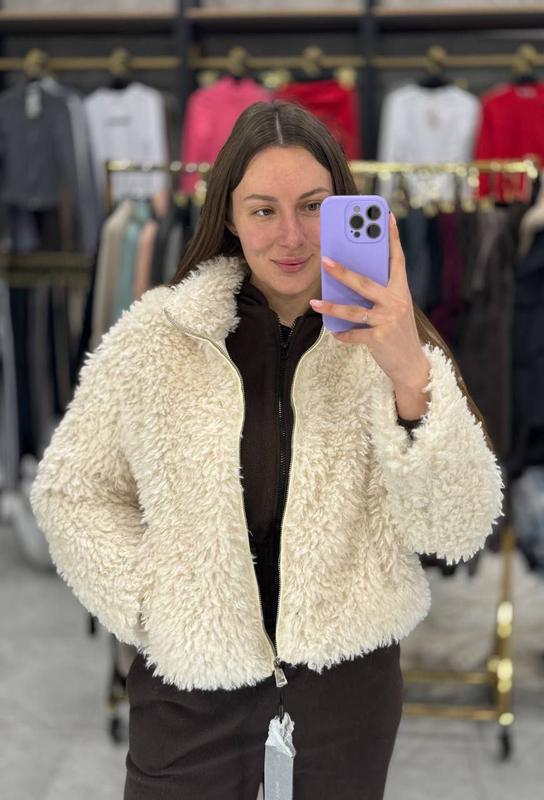 Новинка ❤️❤️❤️ Стильна, трендова куртка баранець на блискавці, знизу фіксується куліскою. Модель: 10046 Розміри: S,M Ціна: 790грн Тканина: баранець дуже гарної якості Кольори: білий , графіт Заміри: 📌Обхват грудей S-110см,М-120см 📌Довжина 52 см 📌Рукав S-64см,М-66см