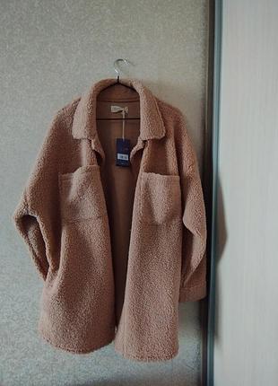Красивая куртка теди в бежевом цвете. Размер l Имеет карманы. свободного кроя
