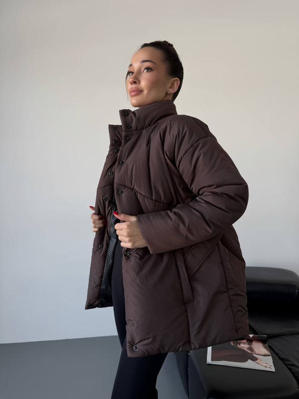 ⛄️Бомбезная куртка - 1160 грн ⛄️Одевайсь не только тепло, а еще и стильно Только реальные фото👑 Размеры: - шоколад - черный - белый ➡️Мод. 4215 ➡️Размеры: 42-46, 48-50 ➡️Ткань: качественная матовая плащевка Канада + подкладка + синтепон 250. Длина 81-82см ☃️Замеры: Размер 42-46 - ОГ до 98см Размер 48-50 - ОГ до 114см Описание: 🖤Глубокие боковые карманы 🩷Наполнитель синтепон 250, который даст вам возможность чувствовать себя комфортно при температуре до минус 20°