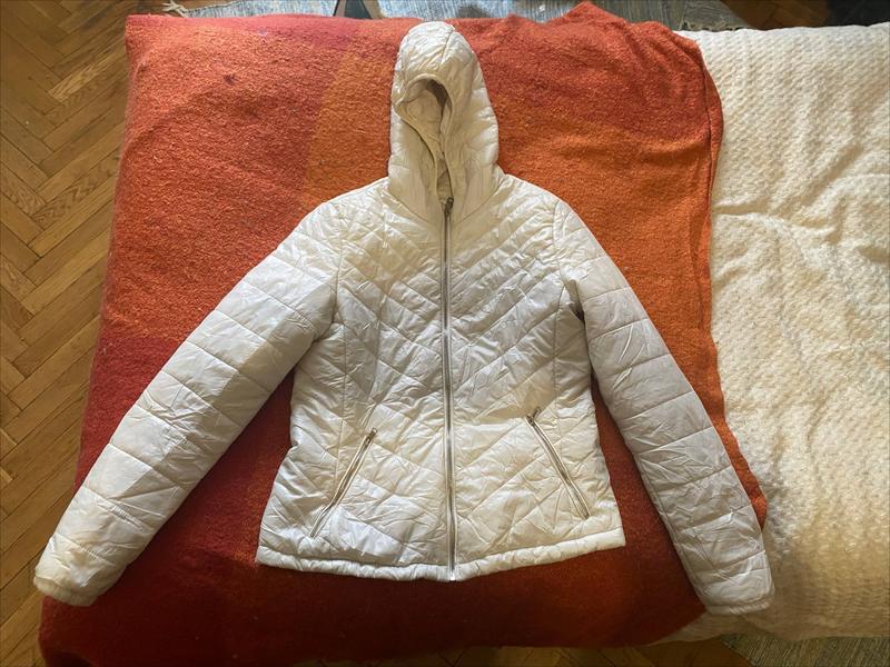 Куртка Bershka Premium Outerwear, оригінал. Колір — молочно-білий / айворі. Легка утеплена куртка з капюшоном, простьобана геометричним візерунком. Застібається на блискавку, має дві бічні кишені на замках. Манжети без резинок, акуратна посадка по фігурі. Підійде для прохолодної осені, весни або м’якої зими. Розмір: M (EUR M / USA M / MEX 28), але маломірить. Стан: дуже хороший, без плям і дірок, фурнітура справна. Виробництво: Вʼєтнам. Стильна базова куртка на кожен день, легко поєднується з джинсами та повсякденним одягом. За потреби надам заміри та додаткові фото.