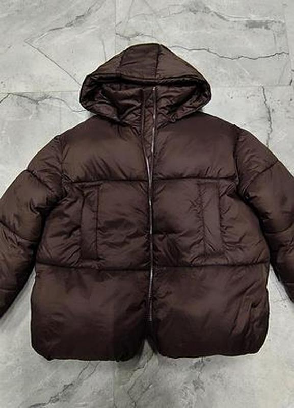 Пуфер объемный,очень красивого шоколадного цвета.Купила в Европе.Ширина 70 см,длина от плеча 72см.,на М,Л,ХЛ хорошо подходит