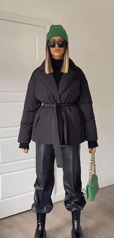 Довжина 73см, ширина плечей 42см, довжина рукава 65см, 7см манжет трикотаж ☝️погруддя 53см, поталіі 48см, по низу 63см, подвійна застібка, внутрішні на змійці, по верху на ґудзиках, під вороном є капелюх який складається і ховається у комірі , на поясі куртка дуже крута і тепла ☘️