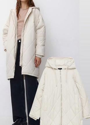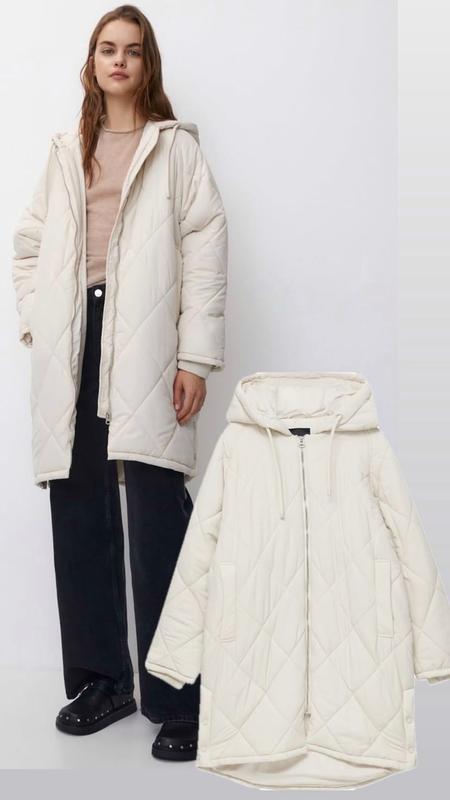 Демісезонна куртка від Pull&Bear. Подовжена з манжетами. Колір молочний.