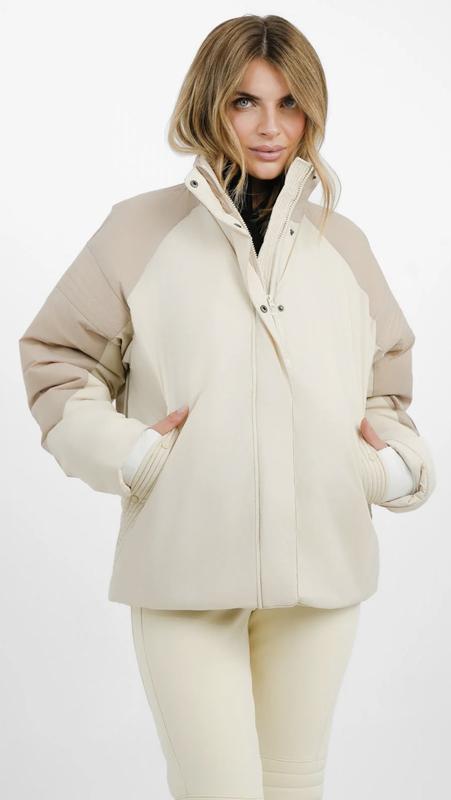 Ця елегантна куртка виготовлена з м’якої тканини в молочному та капучиновому кольорі, яка не тільки чудово виглядає, але й забезпечує затишок на дотик. Розроблена з привабливим силуетом, вона поєднує функціональність та моду, що робить її ідеальною як для активного відпочинку та на щодень. Легка та тепла. Застібка на блискавку та кнопку. Кишені на блискавці Манжети, що закривають великий палець Є куліси знизу для регулювання. За розміром л, підійде також на хл, можна і на м-ку, як оверсайс