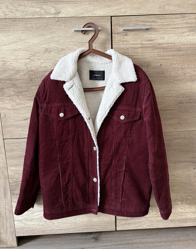 Стильна вельветова куртка з утепленням 🤍 Глибокий бордовий колір + м’який світлий хутряний підклад. Розмір S. • Вельветова тканина • Утеплена всередині • Накладні кишені • Класичний фасон Стан ідеальний, без дефектів